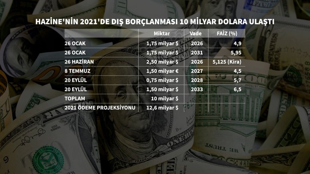 Son yapılan dış borçlanma ile toplamda uluslararası piyasalardan 2021'de 10 milyar dolarlık borçlanma yapıldı. Böylelikle 2021 için görülen dış borçlanma hedefi tamamlanmış oldu.