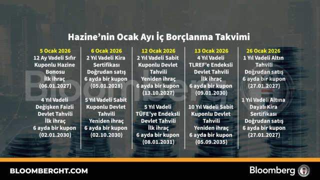 Bloomberg HT Grafik Hazine'nin Ocak ayı iç borçlanma takvimi Hazine'nin Ocak ayı iç borçlanma takvimi Giriş: 02 Ocak 2026, Cuma 19:00 Güncelleme: 02 Ocak 2026, Cuma 19:00