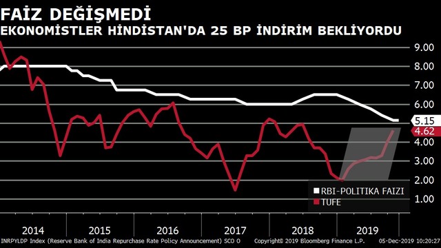 Hindistan Merkez Bankası, faizi yüzde 5.15 seviyesinde tuttu. Ekonomistlerin beklentisi faizlerin düşürülmesi yönündeydi