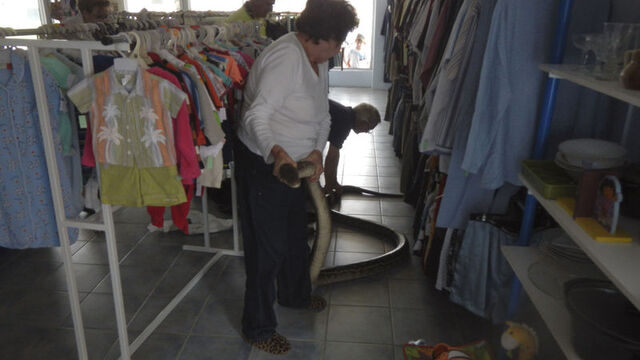 Avustralya'da, polisin hırsız girdiğini sanarak operasyon düzenlediği bir hayır mağazasından 5,7 metre boyunda bir piton yılanı çıktı.
