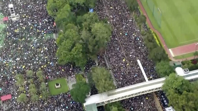 South China Morning Post'un haberinde organizatörlerin protestoların yerel saatle 23.00'te sona erdiğini açıklamasına rağmen binlerce kişinin hala hükümet binasına yürüdüğü belirtildi.