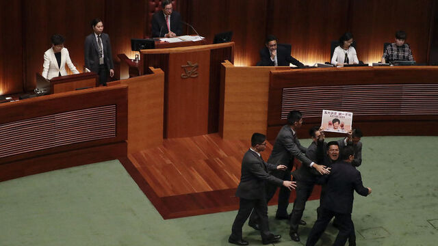 Baş Yönetici Lam, demokrasi yanlısı milletvekillerinin meclisteki protestosu nedeniyle bir kez daha kürsüden inmek zorunda kalırken, oturum iptal edildi.