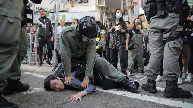 ANKARA (AA) - Çin'in Hong Kong Özel İdari Bölgesi'nde polisin göstericilere gerçek mermiyle müdahalesi sonucu bir gösterici yaralandı.