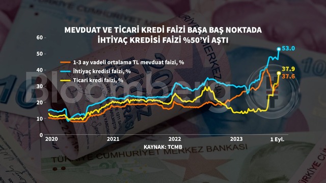 Türkiye Cumhuriyet Merkez Bankası (TCMB) verilerine göre 1 Eylül itibariyle mevduat ve ticari kredilerde faiz başa baş noktada görülürken ihtiyaç kredilerinde faizler yüzde 50'yi aştı. Kredi büyüme hızlarında da dipten yükselme eğilimi izlendi.