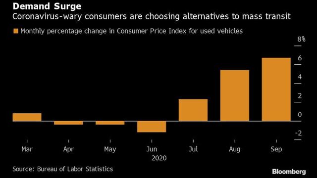 Kullanılmış otomobil fiyatlarının artması, otomobil üreticilerinin giriş seviyesi arabaları üretmeyi bırakması ve pandemiden dolayı toplu ulaşım kullanımının azalmasından da kaynaklanıyor.