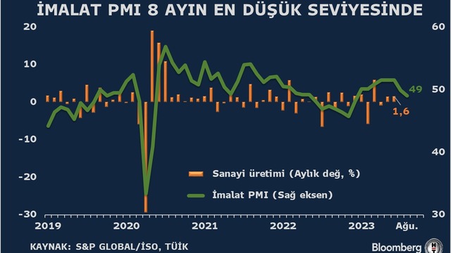 Türkiye imalat PMI Ağustos'ta 49 olarak kaydedildi. Böylelikle imalat göstergesinde yılın en düşük seviyesi izlendi.