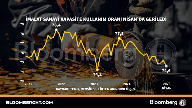 Bloomberg HTGrafikİmalat sanayi̇ kapasi̇te kullanım oranı Ni̇san'da geri̇ledi̇