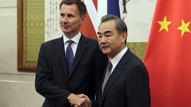 İngiltere'nin çiçeği burnunda Dışişleri Bakanı resmi ziyaret düzenlediği Çin'de ilk resmi temasların ardından Çin Dışişleri Bakanı Wang Yi ile basın toplantısı düzenledi.