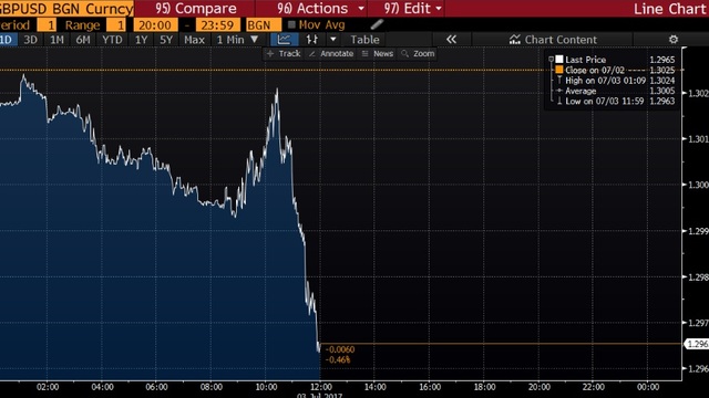 Sterlin, IHS Markit'in verisinin ardından düşüşe geçti ve TSİ 12:05'te dolar karşısında 1.2967 seviyesinden işlem gördü.