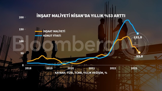 İnşaat maliyet endeksinde artış hızı düşerek Nisan ayında yıllık yüzde 52,99, aylık yüzde 1,03 artış şeklinde kaydedildi. Mart ayındaki veriler sırasıyla yüzde 60,70 ve 2,16 olarak izlenmişti.