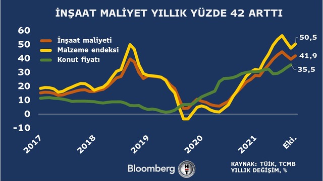 Türkiye İstatistik Kurumu'un açıkladığı verilere göre inşaat maliyet endeksi, 2021 yılı Ekim ayında bir önceki aya göre yüzde 4,75, bir önceki yılın aynı ayına göre yüzde 41,93 arttı. Bir önceki aya göre malzeme endeksi yüzde 6,15, işçilik endeksi yüzde 1,06 arttı. Ayrıca bir önceki yılın aynı ayına göre malzeme endeksi yüzde 50,47, işçilik endeksi yüzde 22,62 arttı.