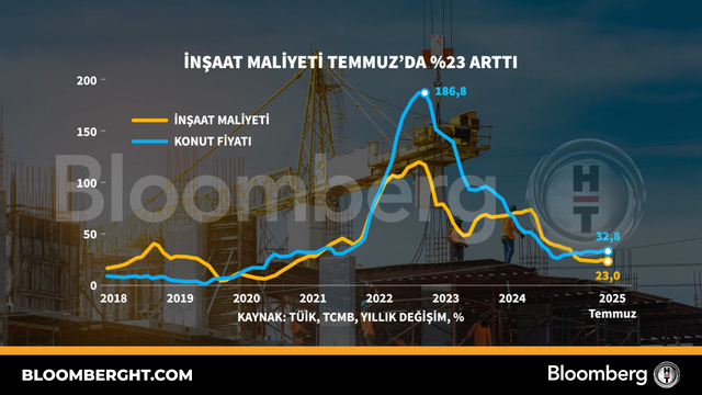 Bloomberg HT Grafik İnşaat mali̇yeti̇ Temmuz'da yüzde 23 arttı