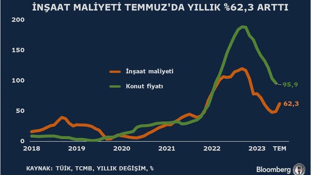 İnşaat maliyetlerinde 2022'nin son çeyreğinde başlayan düşüş ivmesi Temmuz ayında yaşanan sert yükselişle son buldu.