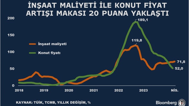 Nisan ayında yaşanan artışla konut enflasyonu ile inşaat maliyet enflasyonu arasındaki makasın daha da açıldığı görüldü. Buna göre Nisan ayında bu makas 20 puana yaklaştı.