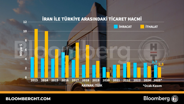 Bloomberg HT Grafik İran ile Türkiye arasındaki ticaret hacmi İran ile Türkiye arasındaki ticaret hacmi Giriş: 13 Ocak 2026, Salı 19:02 Güncelleme: 13 Ocak 2026, Salı 19:02