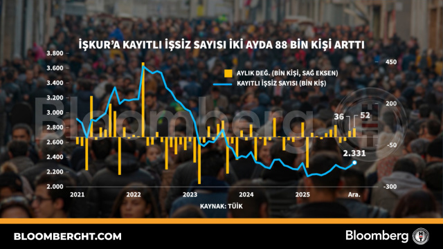 Bloomberg HTGrafikİŞKUR'a kayıtlı işsiz sayısı iki ayda 88 bin kişi arttı