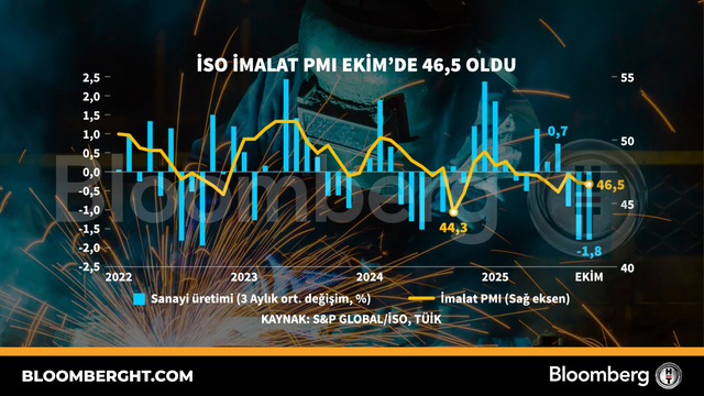 Bloomberg HT Grafik İSO imalat PMI Ekim'de 46,5 oldu İSO imalat PMI Ekim'de 46,5 oldu Giriş: 03 Kasım 2025, Pazartesi 16:58 Güncelleme: 03 Kasım 2025, Pazartesi 16:58 REKLAM advertisement3ndparty