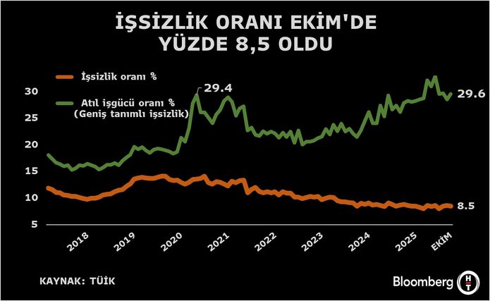 TÜİK'in yayımladığı verilere göre, Türkiye'de işsizlik oranı Ekim'de yüzde 0,1 düşüşle yüzde 8,6'tan yüzde 8,5'e düştü. Geçen ay işsizlik oranı yüzde 8,5'ten yüzde 8,6'ya yükselmişti.