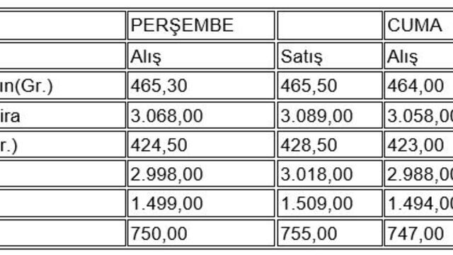 İstanbul Kapalıçarşı'da alınıp satılan altın türlerinin, önceki kapanış ve bugün açılış fiyatları (TL) şöyle: