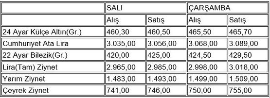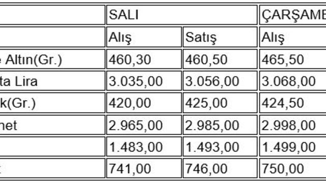 İstanbul Kapalıçarşı'da alınıp satılan altın türlerinin, önceki kapanış ve bugün açılış fiyatları (TL) şöyle: