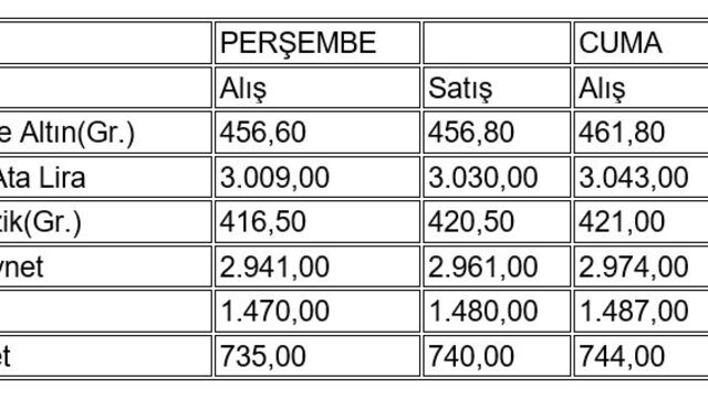 İstanbul Kapalıçarşı'da alınıp satılan altın türlerinin, önceki kapanış ve bugün açılış fiyatları (TL) şöyle: