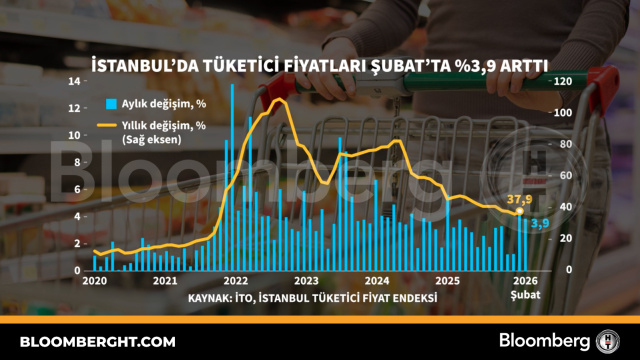 Bloomberg HT Grafik İstanbul'da tüketici fiyatları Şubat'ta yüzde 3,9 arttı İstanbul'da tüketici fiyatları Şubat'ta yüzde 3,9 arttı 02 Mart 2026, 20:10 Güncelleme : 02 Mart 2026, 20:10 İlgili Haberler Perakende satışlar Aralık'ta gücünü korudu Dünyanın en büyük nikel madeni üretimi kısacak Venezuela'dan İsrail'e yıllar sonra ilk petrol sevkiyatı Küresel piyasalarda Fed indirimi beklentileri yükseldi Yapay zeka endişesi bu kez varlık yöneticilerini vurdu ABD'de İran tankerleri konusunda temkinli duruş Altın ve gümüşte yön yukarı "Bitcoin Balinaları" yeniden alım yapıyor Fed’de oy hakkı bulunan iki yeni üye faizlerin sabit tutulması gerektiğini savundu Petrol, ABD–İran görüşmeleri ve jeopolitik belirsizlikle yatay seyretti Cumhurbaşkanı kararıyla iki bakanlıkta görev değişimi Trump: Müzakereler başarısız olursa bölgeye ikinci uçak gemisini gönderebiliriz Perakende satışlar Aralık'ta gücünü korudu Dünyanın en büyük nikel madeni üretimi kısacak Venezuela'dan İsrail'e yıllar sonra ilk petrol sevkiyatı Küresel piyasalarda Fed indirimi beklentileri yükseldi Yapay zeka endişesi bu kez varlık yöneticilerini vurdu ABD'de İran tankerleri konusunda temkinli duruş Altın ve gümüşte yön yukarı "Bitcoin Balinaları" yeniden alım yapıyor Fed’de oy hakkı bulunan iki yeni üye faizlerin sabit tutulması gerektiğini savundu Petrol, ABD–İran görüşmeleri ve jeopolitik belirsizlikle yatay seyretti Cumhurbaşkanı kararıyla iki bakanlıkta görev değişimi Trump: Müzakereler başarısız olursa bölgeye ikinci uçak gemisini gönderebiliriz