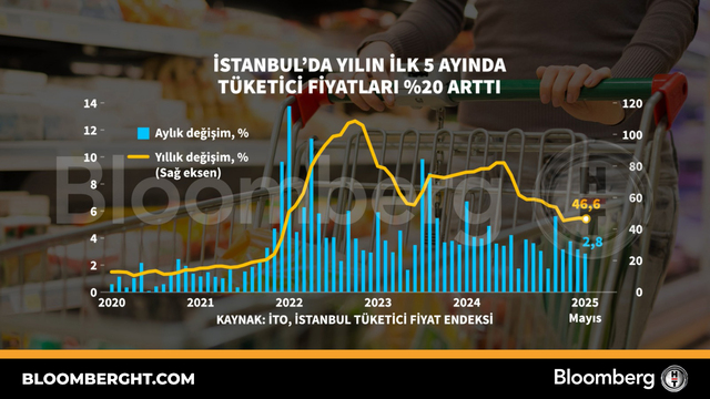 Bloomberg HTGrafikİstanbul'da yılın i̇lk beş ayında tüketi̇ci̇ fi̇yatları yüzde 20 arttı