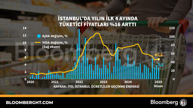 Bloomberg HTGrafikİstanbul'da yılın i̇lk dört ayında tüketi̇ci̇ fi̇yatları yüzde 16 arttı