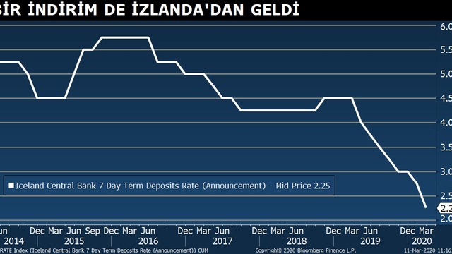 İzlanda Merkez Bankası koronavirüsün etkilerine karşı acil durum toplantısı yaparak gösterge faiz oranını en düşük seviyesine çekti.