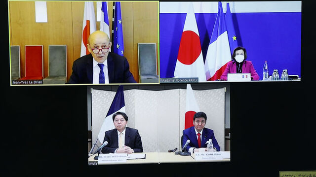 Japonya Dışişleri Bakanı Hayaşi Yoşimasa ve Savunma Bakanı Kişi Nobuo ile Fransa Dışişleri Bakanı Jean-Yves Le Drian ve Savunma Bakanı Florence Parly, 2+2'li çevrim içi zirvede bir araya geldi.