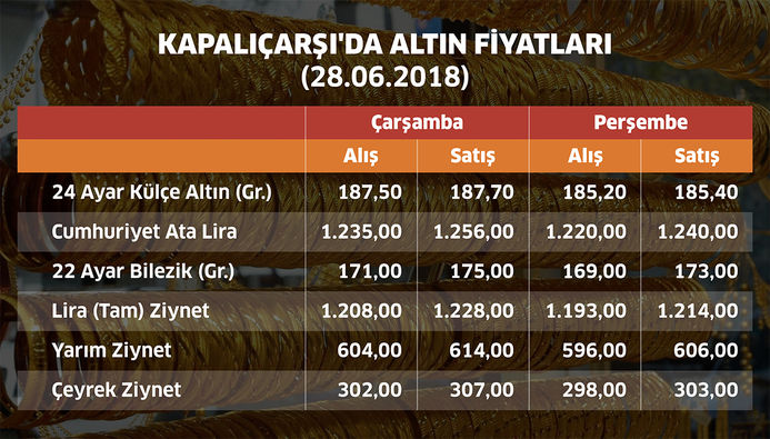 Kapalıçarşı'da altın fiyatları (28.06.2018)