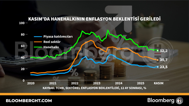Bloomberg HT Grafik Kasım'da hanehalkının enflasyon beklentisi geriledi Kasım'da hanehalkının enflasyon beklentisi geriledi Giriş: 25 Kasım 2025, Salı 19:35 Güncelleme: 25 Kasım 2025, Salı 19:35