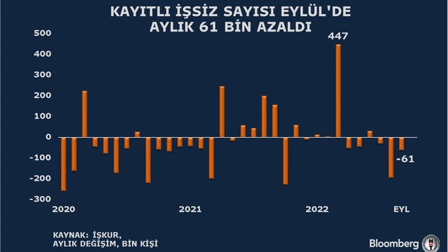 Eylül ayında İŞKUR'a kayıtlı işsiz sayısı Ağustos ayına göre yüzde 1,8 azalarak 3 milyon 282 bin 505 kişi oldu. Kayıtlı işsiz sayısı Eylül'de yıllık olarak yüzde 2'lik düşüş gösterirken kayıtlı kadın işsizliği binde 3 arttı. Kayıtlı işsiz sayısı Eylül'de yıllık olarak 68 bin kişi azaldı.