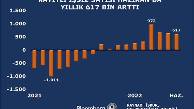 • İŞKUR verilerine göre kayıtlı işsiz sayısı Haziran'da aylık 30 bin, yıllık bazda da 617 bin kişi arttı. Kayıtlı işsiz sayısı bir önceki yılın aynı dönemine göre ise yüzde 20,9'luk artış gösterdi.