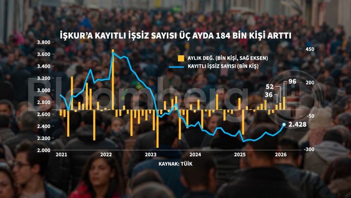 Verilere göre son üç ayda artan kayıtlı işsiz sayısı 184 bin olarak kaydedildi.
