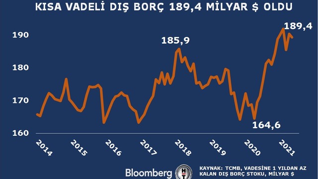 Kısa vadeli dış borç stoku, 2020 yıl sonuna göre yüzde 4,6 oranında artışla 144,9 milyar dolara ulaşarak rekor kırarken bu dönemde bankalar kaynaklı kısa vadeli dış borç stoku yüzde 2,1 artışla 59,2 milyar dolar oldu.