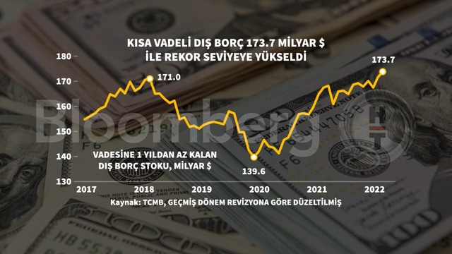 2022 Ocak sonu itibarıyla, orijinal vadesine bakılmaksızın vadesine 1 yıl veya daha az kalmış dış borç verisi kullanılarak hesaplanan kalan vadeye göre kısa vadeli dış borç stoku 173,7 milyar dolar düzeyinde gerçekleşti. Böylelikle Türkiye Cumhuriyet Merkez Bankası'nın revizyonu dikkate alınarak bakıldığında söz konusu veri setinin en yüksek seviyesi kaydedildi.