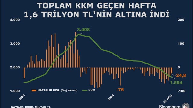 Toplam KKM 1,6 trilyon TL'nin altına geriledi