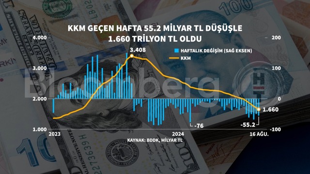Kur korumalı mevduatlarda 16 Ağustos haftasında 55,2 milyar TL'lik düşüş kaydedildi. Böylece bir önceki haftaya göre çözülme hızlandı.