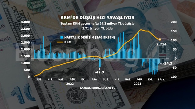 KKM, Ağustos ayı ortası itibarıyla rekor seviyesi olan yaklaşık 3 trilyon 408 milyar seviyesine yükseldikten sonra, 1 Aralık haftası itibarıyla 694 milyar lira eksilerek 2 trilyon 714 milyar TL seviyesine indi.