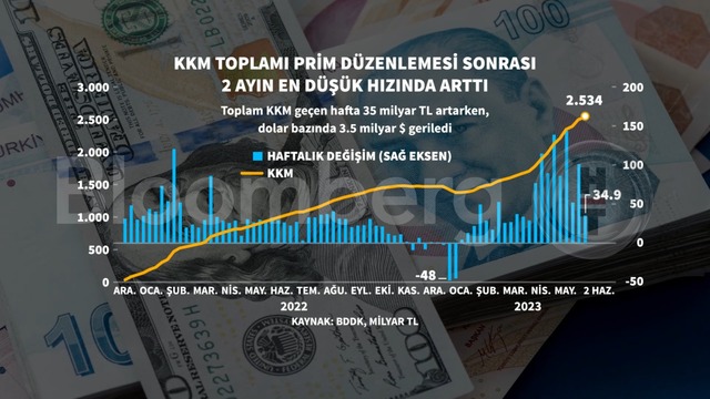 Bankacılık Düzenleme ve Denetleme Kurumu (BDDK) verilerine göre 2 Haziran haftasında kur korumalı mevduatlar 35 milyar TL artışla 2,5 trilyon TL oldu. 35 milyar TL'lik artış son 2 ayda kur korumalı mevduatlarda görülen en yavaş artış.
