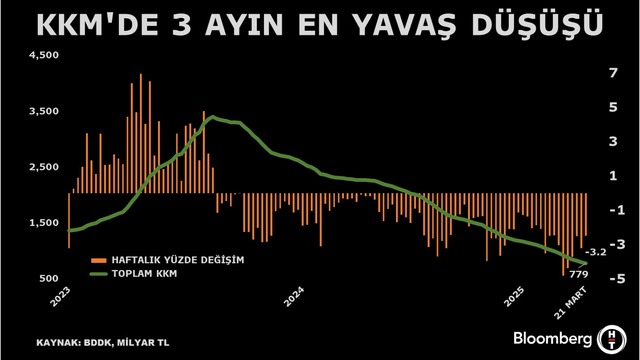 Bankacılık Düzenleme ve Denetleme Kurumunun (BDDK) yayımladığı haftalık bültenine göre, KKM 798,8 milyar TL'den 779 milyar TL'ye geriledi.