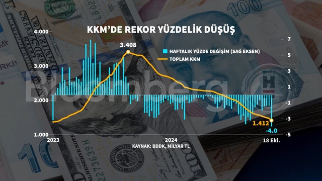18 Ekim haftasında kur korumalı mevduatlar yüzde 3,97 geriledi. Böylelikle KKM'de rekor değişim kaydedildi.