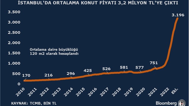 Türkiye'nin en sıcak konut pazarı İstanbul'da fiyatlarda yukarı yönlü ivme Ekim'de de devam etti. Buna göre İstanbul'da konut fiyatları Ekim'de yıllık olarak yüzde 204,6 arttı. Yeni konutlarda artış yüzde 198,3 olurken, yeni olmayan konutlarda yüzde 206,9'luk artış görüldü. Ekim ayı itibariyle İstanbul'da metrekare başına ortalama fiyat 26 bin 637 oldu.