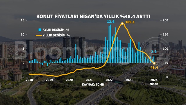 Türkiye Cumhuriyet Merkez Bankası'nın (TCMB) konut fiyat endeksine göre Nisan ayında konut fiyatlarında yıllık artış yüzde 48,42 olarak kaydedildi. Aynı dönemde tüketici fiyatlarında yıllık yüzde 69,80'lik artış görülmüştü.