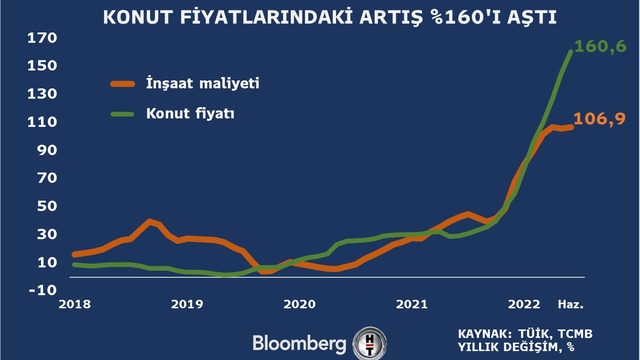 Konut fiyatları Haziran ayında bir önceki yılın aynı dönemine göre yüzde 160,57 arttı.