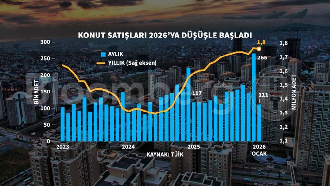 Buna göre, Türkiye genelinde konut satışları 2026 yılı Ocak ayında bir önceki yılın aynı ayına göre yüzde 2,1 oranında düşerek 34 bin 69 oldu.