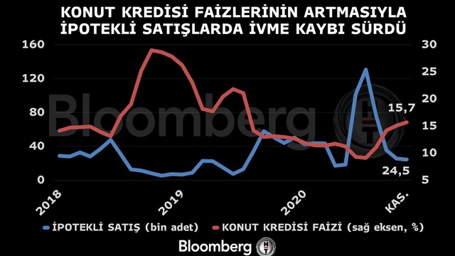 Konut satışları faizlerin yükselişinin devam ettiği Kasım ayında bir önceki yılın aynı dönemine göre yüzde 18,7 düşüş kaydetti.