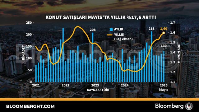 Bloomberg HT Grafik Konut satışları Mayıs'ta yıllık yüzde 17,6 arttı Konut satışları Mayıs'ta yıllık yüzde 17,6 arttı Giriş: 19 Haziran 2025, Perşembe 17:50 Güncelleme: 19 Haziran 2025, Perşembe 17:50