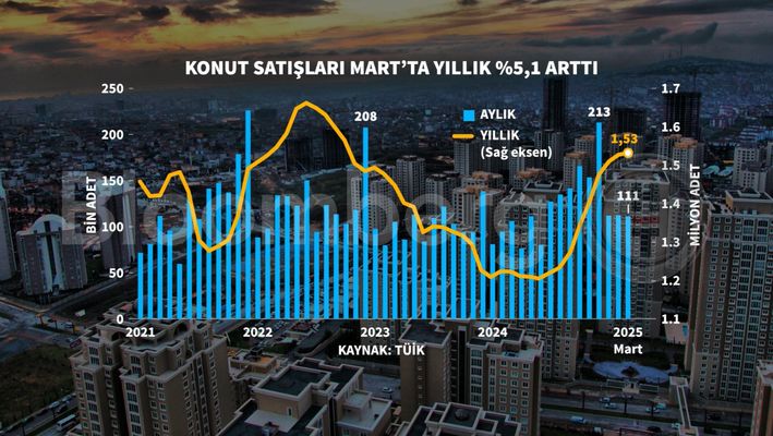 TÜİK verilerine göre Mart'ta konut satışları yıllık yüzde 5,1 düşüşle 110 bin 795 olarak kaydedildi.